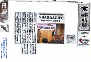 先日11月22日に行われました、グローバル教育研究所・学びの森25周年記念式典の様子が京都新聞に掲載されました。